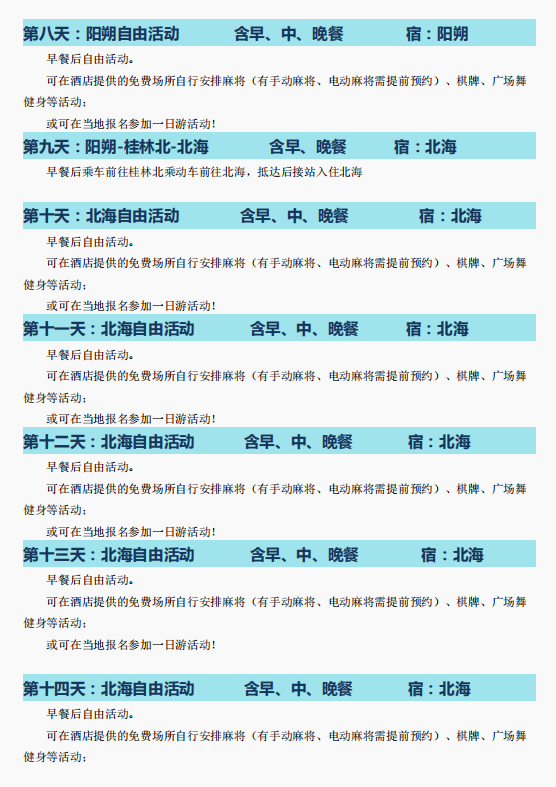 全程入住桂林 3 晚,阳朔 4 晚,北海 6 晚